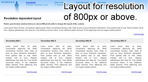 大多數(shù)流動(dòng)布局在分辨率為800×600的屏幕中看起來很大很寬--高達(dá)1280px。但是,我們可以稍稍突破一下,針對(duì)800px-1024px、1024px-1280px、1280px以上的屏幕定制略微不同的布局。同樣,也可為640px-800px、320px-640px、240px-320px、240px以下的屏幕自定義調(diào)整。