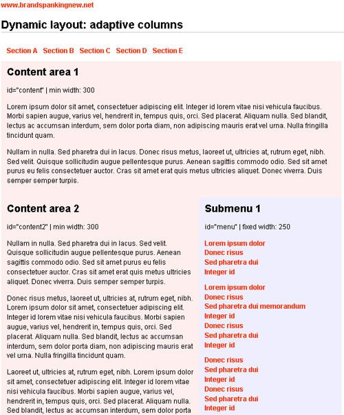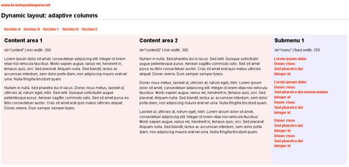 這種概念并不難,關(guān)于此技術(shù)每個(gè)開發(fā)者都有自己的腳本,Clagnut.com博客的回帖中有更多關(guān)于自適應(yīng)內(nèi)容的布局和腳本--“Variable fixed width layout“,在其回帖中甚至有一種技巧無(wú)需任何腳本--CSS Drop Column Layout