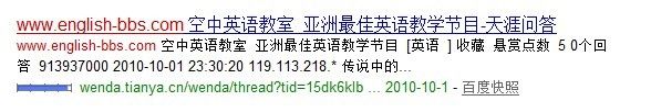 最近,測試了很多做外鏈的方式,其中一種就是針對(duì)于天涯問答的推廣方式,下面給大家分享一下天涯問答做外鏈的效果和辦法。因?yàn)樘煅膯柎鸬氖珍浐芸?,?quán)重很高,而且外鏈有效,所以是非常棒的選擇。昨天,我在天涯問答發(fā)表的一片帖子,今天查詢外鏈,就出現(xiàn)在了查詢頁首頁,截圖說明: