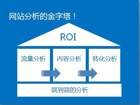 網(wǎng)站分析的整個過程是一個金字塔的結(jié)構(gòu)。金字塔的頂部是網(wǎng)站的目標(biāo):投資回報率(ROI)。要達(dá)到這個目標(biāo),我們首先需要有訪問者,所以第一部分是網(wǎng)站的流量分析。其次,我們要針對訪問者的需求,有效的展示我們的內(nèi)容,商品和信息。并且讓客戶喜歡這些內(nèi)容。因此,第二部分我們要對網(wǎng)站的內(nèi)容進(jìn)行分析。內(nèi)容分析涵蓋的范圍比較廣,包括導(dǎo)航分析,頁面質(zhì)量分析等等。最后,也是最關(guān)鍵的部分,我們要讓訪問者轉(zhuǎn)化為客戶,購買我們的信息和商品。只有訪問者完成了最后的轉(zhuǎn)化,我們才能完成網(wǎng)站的最終目標(biāo)。因此我們要對網(wǎng)站的轉(zhuǎn)化進(jìn)行分析。最后,每一個問題都不是單一的原因引起的,每一個分析也都不是孤立存在的,因此我們還需要串聯(lián)整個訪問和購買過程。對網(wǎng)站進(jìn)行端到端的分析。下面,我們來逐一說明每一部分的分析方法和我們要分析的內(nèi)容。