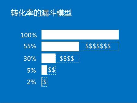 來看下網(wǎng)站分析中的經(jīng)典漏斗模型。100%的訪問者進(jìn)入網(wǎng)站,45%的訪問者跳出離開網(wǎng)站,這些訪問者沒有機(jī)會轉(zhuǎn)化為客戶為你帶來收入了,同時你花費(fèi)在他們身上的廣告費(fèi)也打水漂了。只剩下55%的訪問者繼續(xù)前進(jìn)。在下一級頁面,因?yàn)閷?dǎo)航設(shè)計(jì)問題,又有25%的訪問者離開網(wǎng)站。你失去了這部分訪問者的訂單,同時再一次浪費(fèi)了廣告費(fèi)。繼續(xù)前進(jìn),因?yàn)轫撁鎯?nèi)容問題,轉(zhuǎn)化渠道阻力及流失問題,不斷有訪問者離開網(wǎng)站。最終只有2%的訪問者成功下單支付,完成了網(wǎng)站的目標(biāo)。而在這整個過程中你損失了98%的訪問者,這些訪問者可能產(chǎn)生的收入,以及為了獲取這些訪問者而支付的廣告費(fèi)。在這個漏斗模型中,要增加最終的收入有兩個方法。1獲得更多的訪問者,當(dāng)然購買訪問者是需要花錢的,并且你依然在浪費(fèi)廣告費(fèi)。這并不能讓你獲得更多的收入。2提升每一步的轉(zhuǎn)化率,降低訪問者的流失比例。