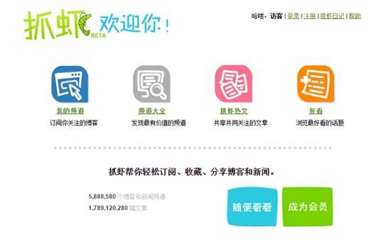 抓蝦是一個RSS在線閱讀訂閱站點,它能幫助互聯(lián)網(wǎng)用戶訂閱、收藏、分享自己關注的博客與新聞,讓網(wǎng)民一站獲得這些資訊的更新消息。